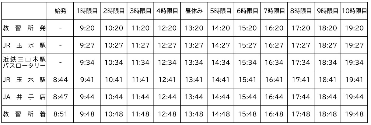 ※ 最終時限終了後の近鉄三山木駅への送迎はありません。八幡送迎をご利用ください。