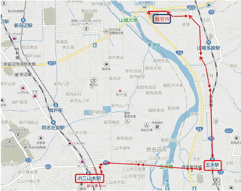 ※ 最終時限終了後のJR玉水駅へは、加茂・木津送迎の新田辺駅をご利用ください。