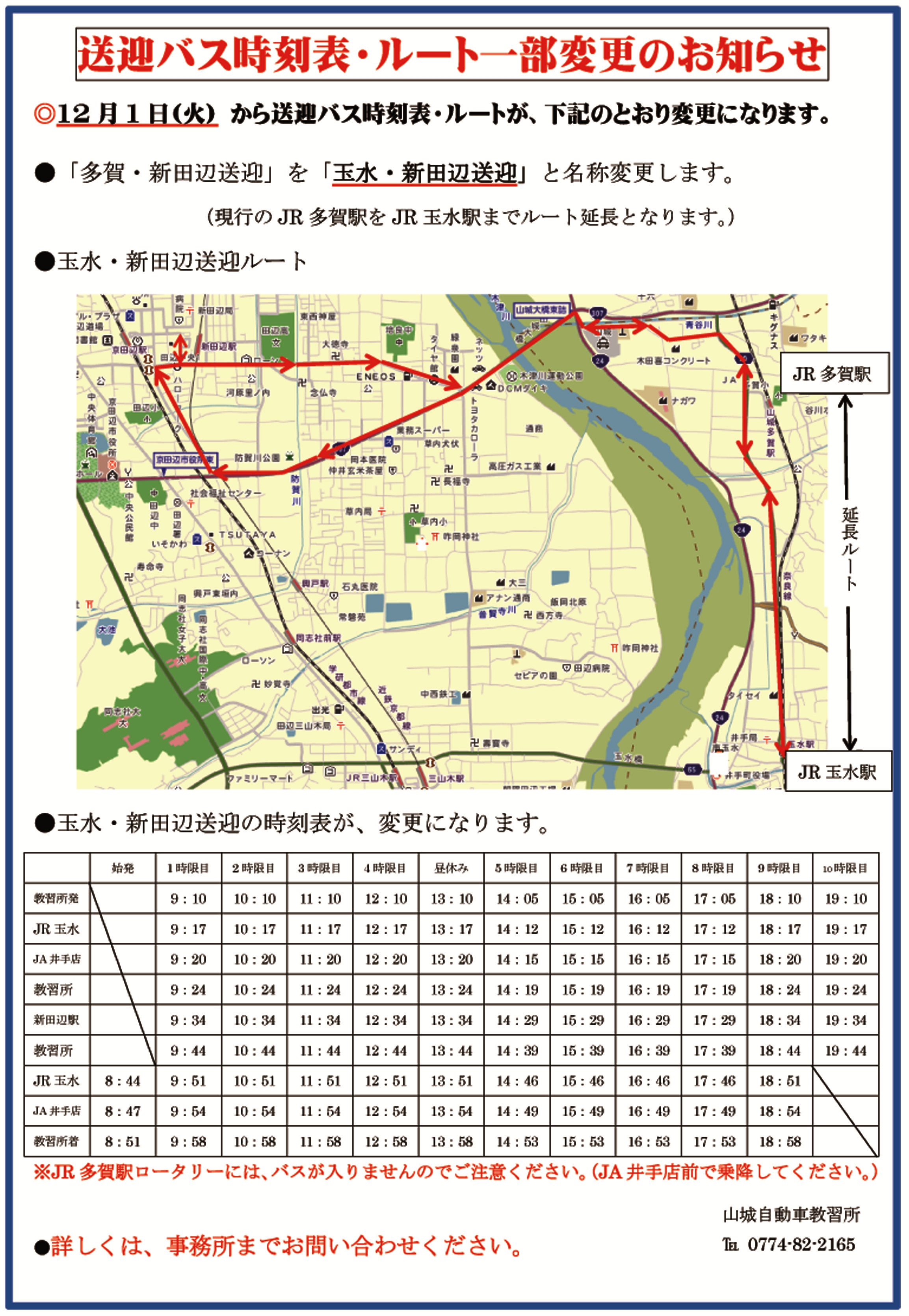 送迎バスルートの一部変更について